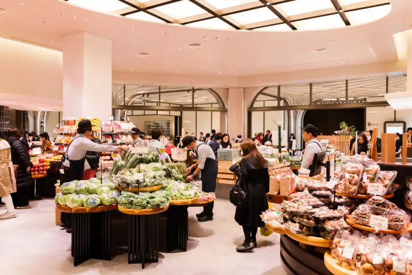 A bustling Japanese market that offers a luxury shopping experience