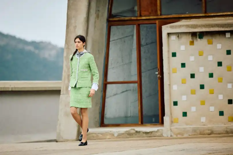 In this spirit of togetherness, Chanel and Le19M, the home of the Métiers d’art, held an exhibition in Marseille to highlight local artists, host workshops and spark discussions about the ties between the city’s creative scene and the artisanal practices that inform the brand’s collections. It took place at the Fort Saint-Jean, one of the sites of the Mucem (Museum of the Civilisations of Europe and the Mediterranean), while a runway show was held at the Le Corbusier-designed Cité Radieuse, celebrating the new cruise collection, as well as Marseille’s ties to modernist architecture, its creative spirit and its Mediterranean landscapes.