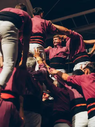 Surveying the crowds from the top floor of the arena is Pere Ferrando, president of the jury. He is surrounded by several screens showing all the action. Allcollesreceive a score based on the difficulty of their constructions, and alongside six other jurors, Ferrando will be marking the performances. There are about 40 different types ofcastells, each of which is only complete when theenxaneta(one of the smallestcastellers) reaches the top of the tower and raises one hand. Extra points are given for a safe dismantling. But today is not only about rivalry. “What makes it interesting is that you don’t necessarily need to compete with anothercolla,” says Ferrando. “It’s also about surpassing yourself.” That said, he will be keeping a close eye on the tug of war between the two teams angling for the tallestcastells: the Castellers de Vilafranca and the Colla Vella dels Xiquets de Valls. The former has dominated the competition since the mid-1990s, winning 11 of the past 13 editions, while the latter is the team threatening this dominance.