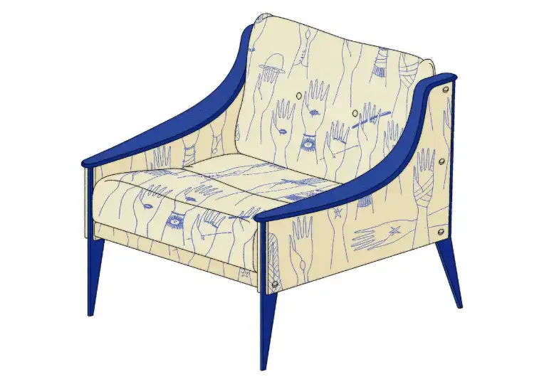 Originally designed by Gio Ponti in 1965, the Dezza armchair is turning 60 this year. To celebrate, a limited run of 60 pieces is being released, featuring unpublished illustrations of hands by the Italian design maestro.