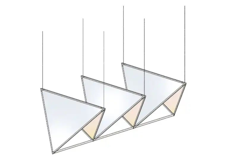 Unveiled at the Fondazione Danese, this geometric lighting system by London-based Cypriot designer Michael Anastassiades was inspired by childhood memories of flying paper kites. Thanks to its paper shades, it diffuses a soft glow.