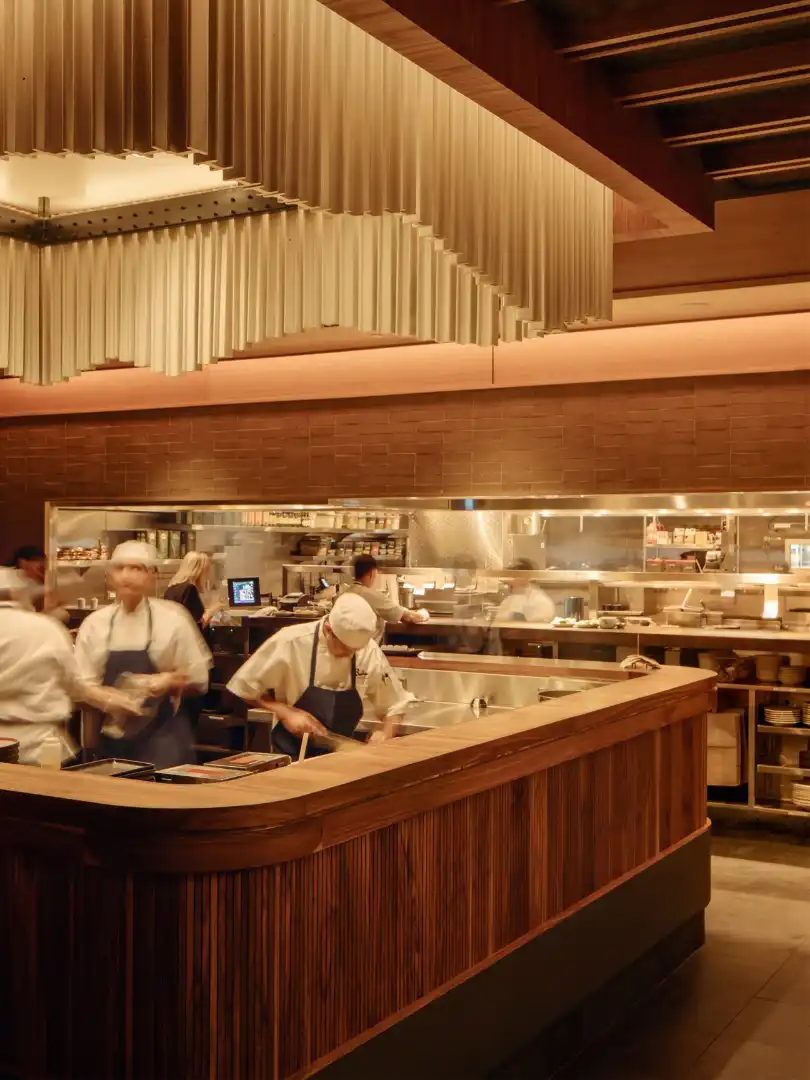 The emphasis on acoustics fits with MHOA’s philosophy that designing for dining is a multi-sensory experience. There are the obvious tastes and smells of the food but also distinctive visual techniques, such as providing sightlines to signature elements of the kitchen – say a wood-fired grill or chicken rotisserie. “Restaurants elicit a higher level of emotional response than other spaces,” says Hsu. “So we ask what we want it to feel like before we dive into what we want it to look like.”
