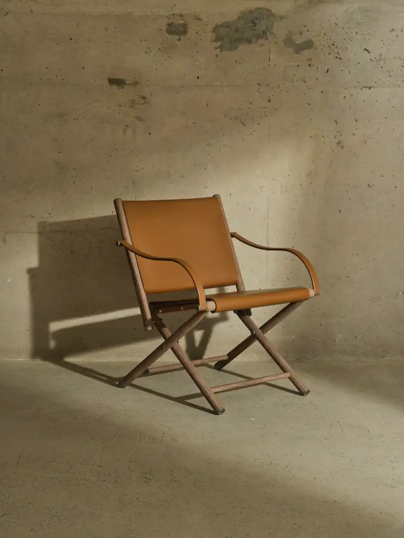 Antonio Citterio’s design appears to be inspired by a director’s chair. The base is composed of solid wood while its armrest, seat and backrest are made from metal that’s clad in cowhide.