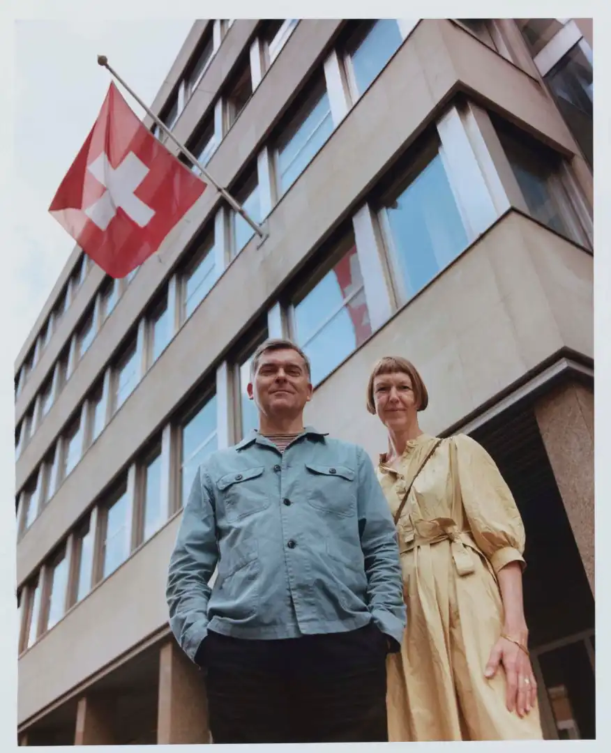 Alun Jones and Biba Dow of Dow Jones Architects are leading the renovation of the Swiss Embassy in London. Together with Bern-based Studio DIA, they have been tasked with bringing the building into the 21st century. The current embassy, which juxtaposes a heritage-listed Georgian-style mansion façade with a modernist annexe, was completed by Swiss architect Jacques Schader in 1971.