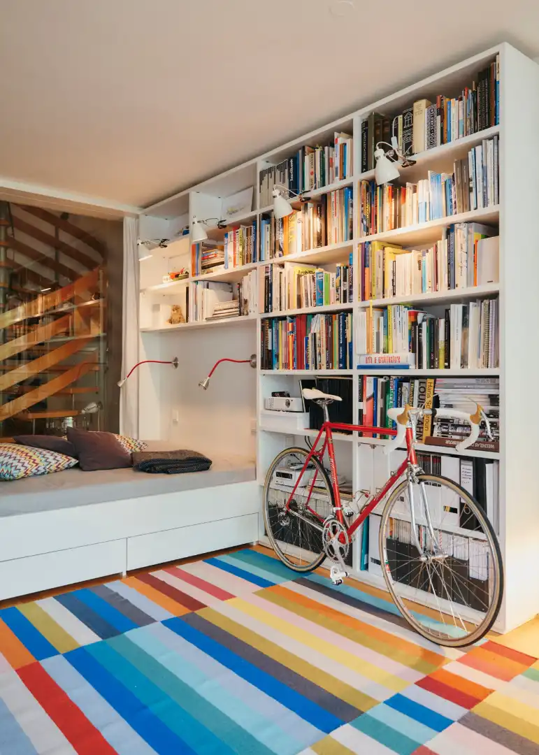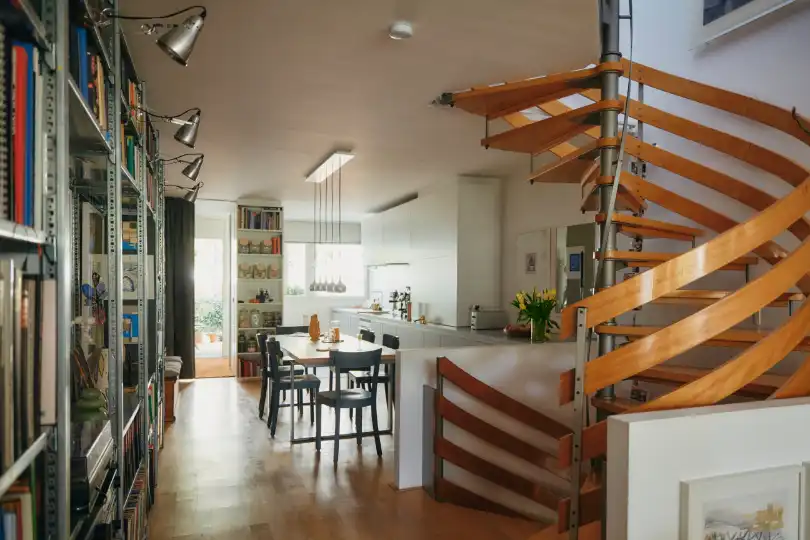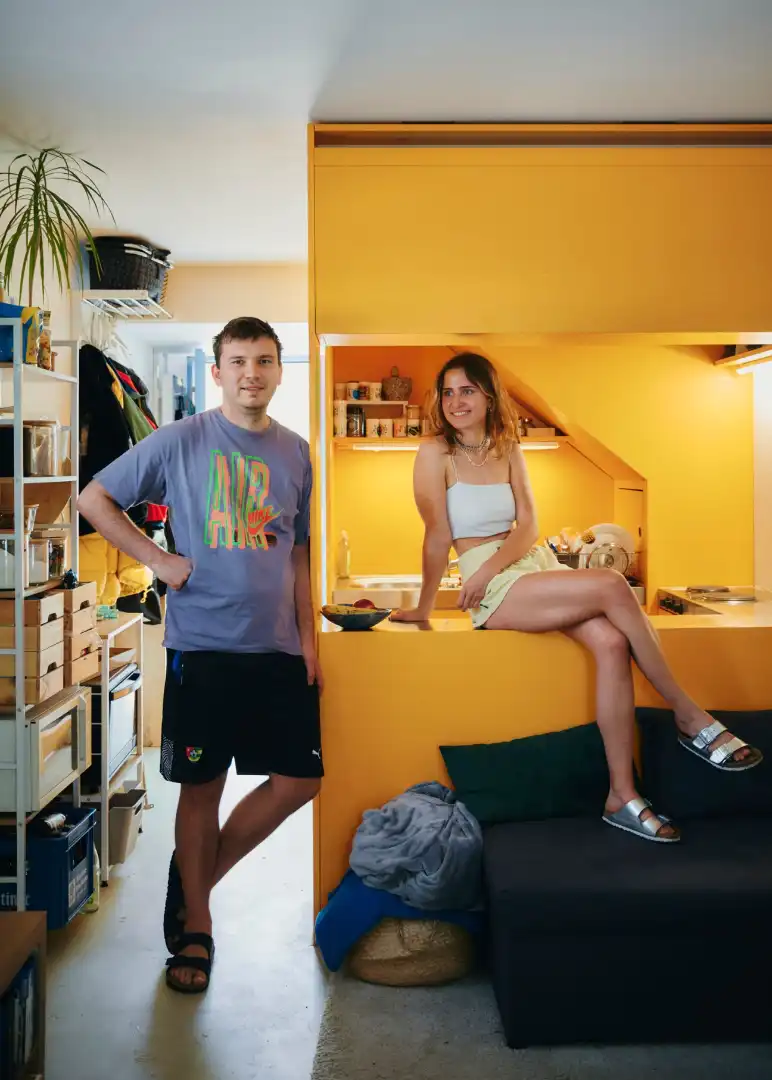 Ironically, the rushed construction that made the homes undesirable at first is today also an asset. Since every apartment hosted up to five athletes, the interiors were mostly corridors and small rooms, plus cheap in-built kitchens and bathrooms. Those who moved in had almost no choice but to tear down some walls, opening up the spaces. Today the Olympiapark is heritage protected but this applies only to the exteriors; inside, residents are free to do what they want. When the Nieses moved in, they kept the original (and slightly wobbly) metal spiral staircase but put in an open kitchen and a parquet floor. “In Munich, there’s no plot of land that an architect can buy to build their own house on,” says Niese. “Here, you can at least realise your dream within these concrete shells.” Unsurprisingly, Olydorf is particularly popular with architects. “I think we have the densest population of architects in the world,” says Sandra Niese, who adds to that statistic herself.