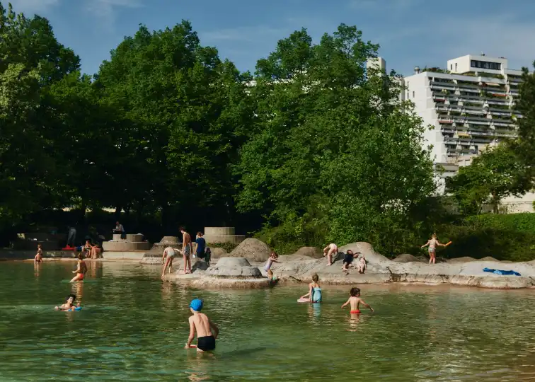 “We really live in a 1970s utopia,” says Stefan Niese, who meets Monocle at Nadisee, the Olympiapark’s artificial lake. It’s a hot day, and children are splashing in the shallow water against a backdrop of greenery and pale-concrete high-rises. The area feels like a world in itself; a world that Niese is used to guiding visitors around on tours. The architect – a nearly two-decade resident of Olydorf, the local nickname for the neighbourhood that is the former athlete’s village inside Olympiapark – is also a partner at Weber Auer, whose founders were involved in bringing it into being between 1966 and 1972. “The intention was to show the world an image of a happy, democratic Germany,” he says. “Or to create it.”