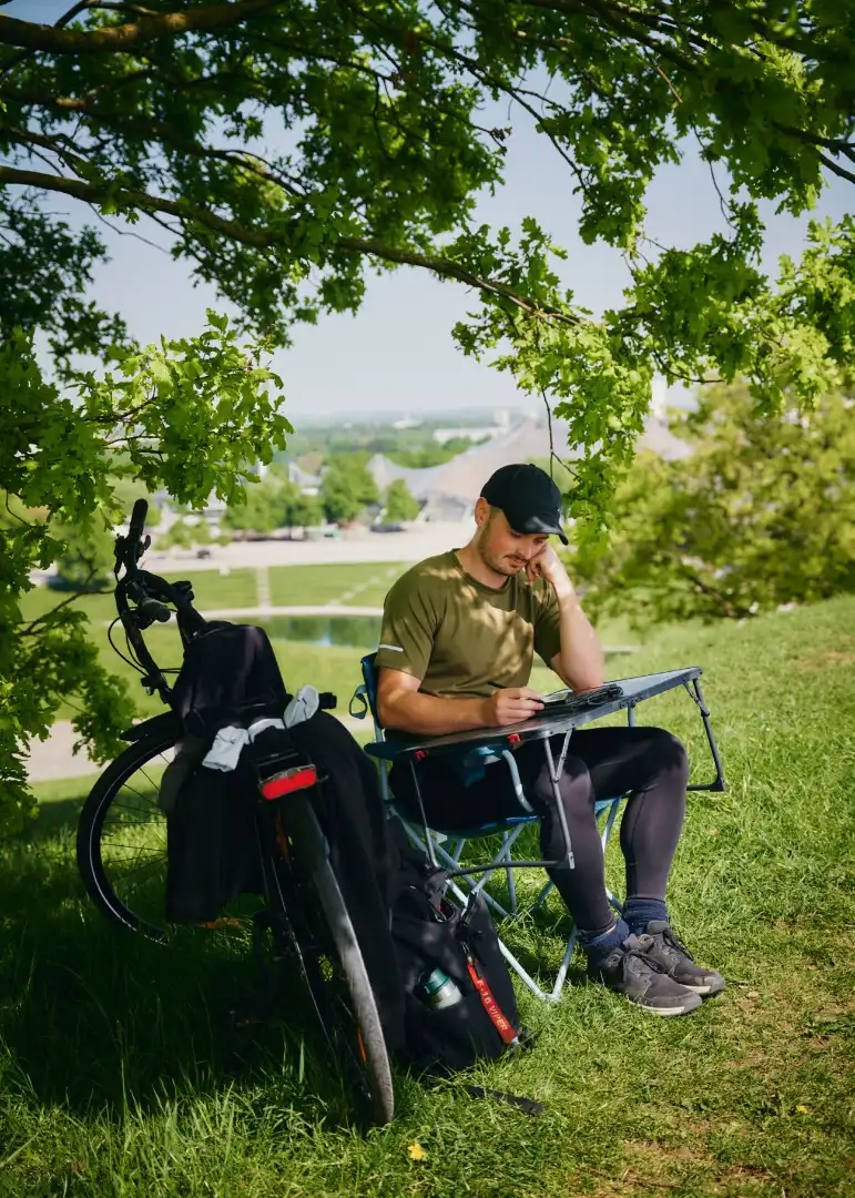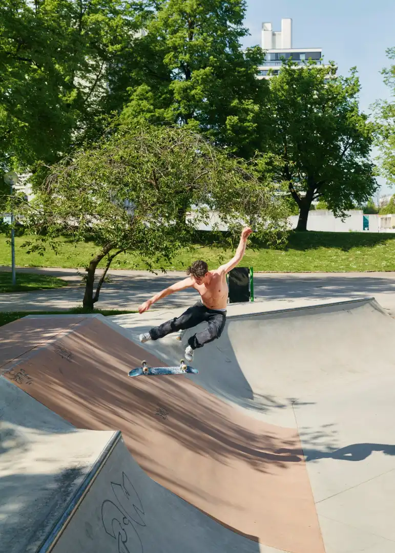 Originally surrounded by fences, the Olydorf is still cordoned off from the city by high, landscaped mounds along its sides. Today, within these grassy banks, the traditional hallmarks of Bavarian life vanish. Munich prides itself on manufacturing shiny bmws but, suddenly, there is not a car in sight. Thanks to a sizeable student contingent housed in dedicated buildings, an Aperol spritz is sold for €2.50 instead of the city’s customary €10. Even the mobile phone service is inexplicably choppy.