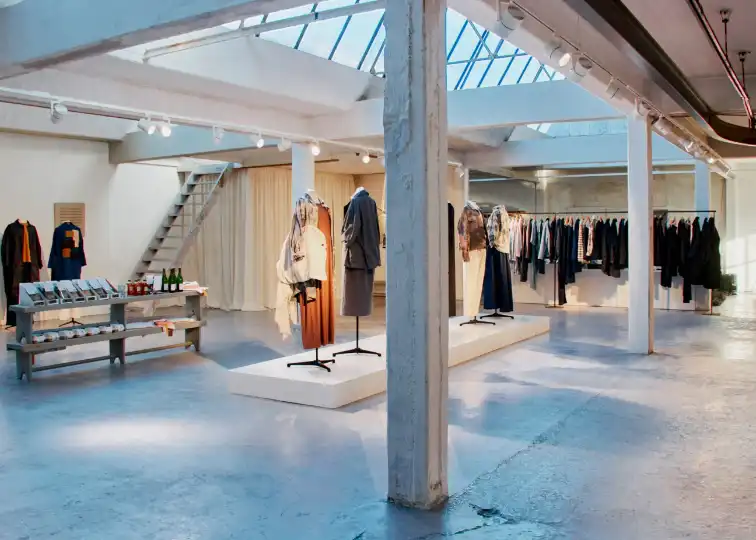 Once ready, pieces make their way to the brand’s flagship boutique, which opened last summer. Located in a former ironmonger’s within walking distance of the atelier, the airy boutique also has an events space, where the brand’s creative clientele – a mix of film producers, architects, graphic designers and gallery owners – get together to host panel discussions, see exhibitions or celebrate their own milestones. Opening up their space to others is part of having a “regenerative mindset”, say the duo, so they make sure that part of the shop is always available for clients to hire.